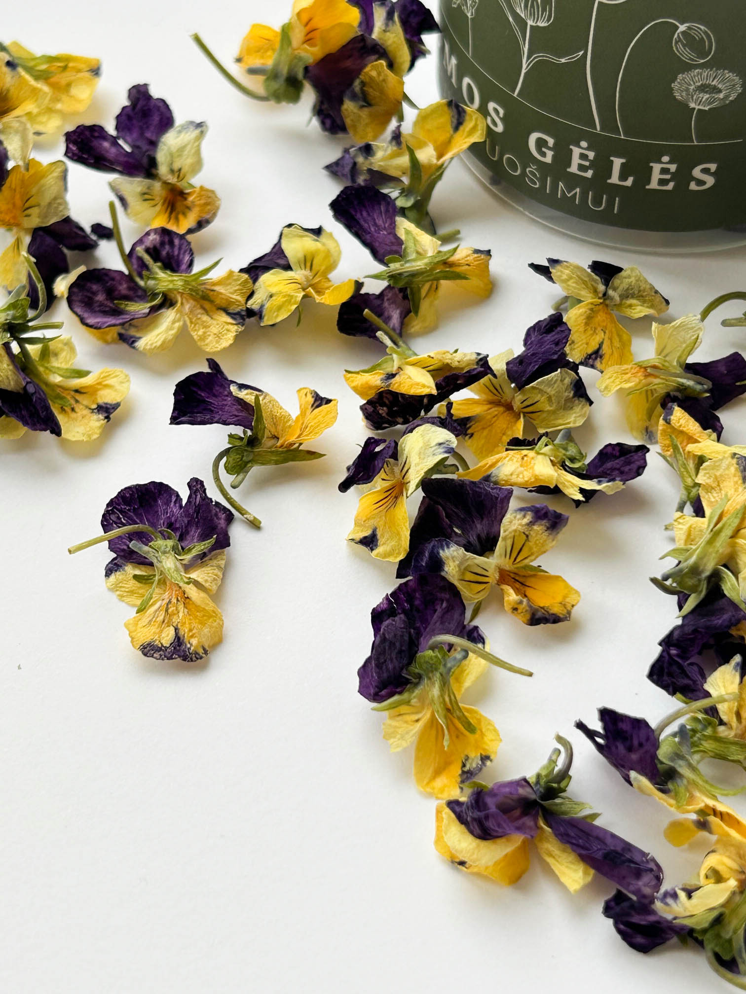Liofilizuotus našlaičių žiedus galima naudoti visur: puošiant patiekalus, užkandžius, kepinius, desertus ar gėrimus.