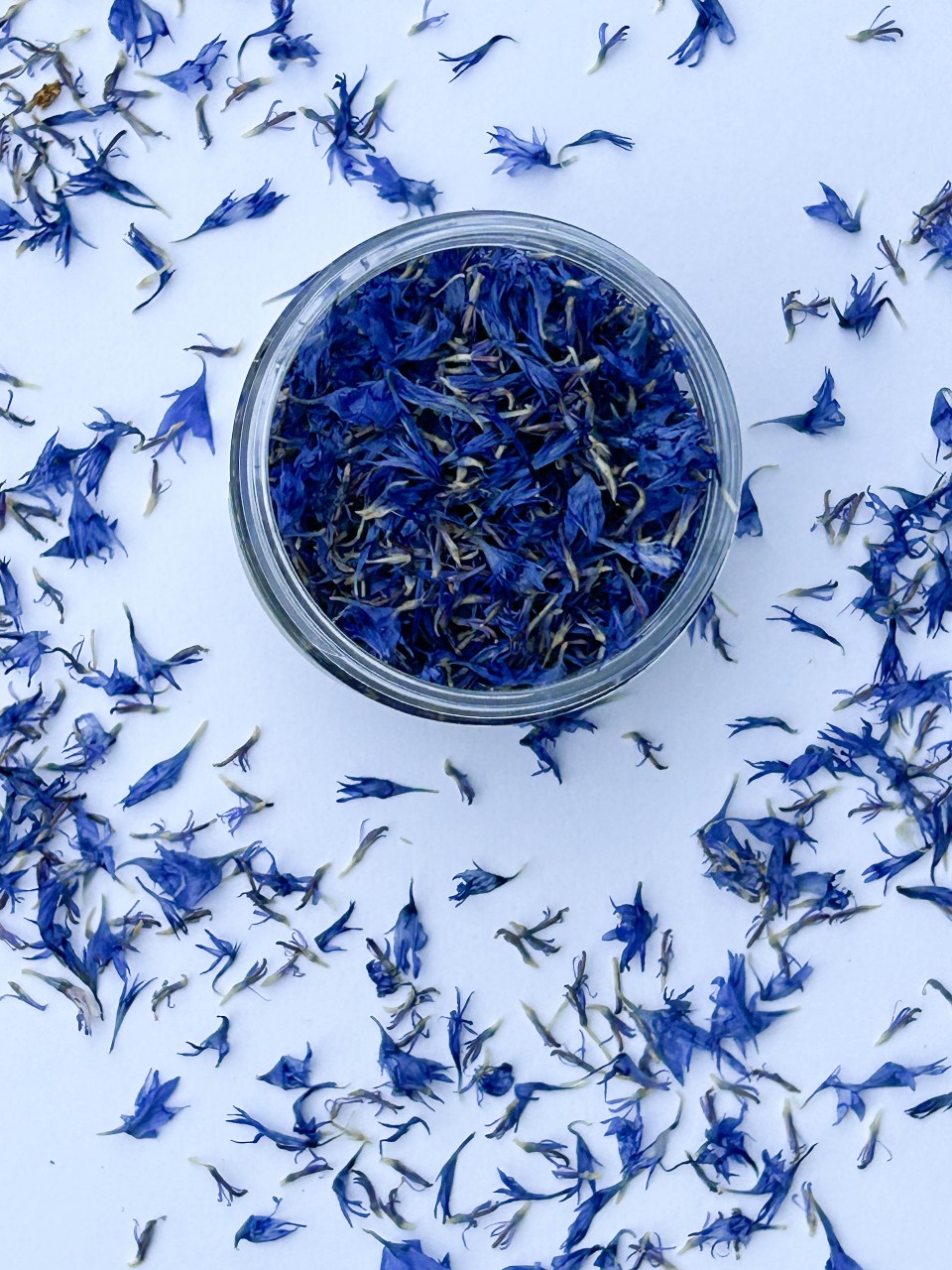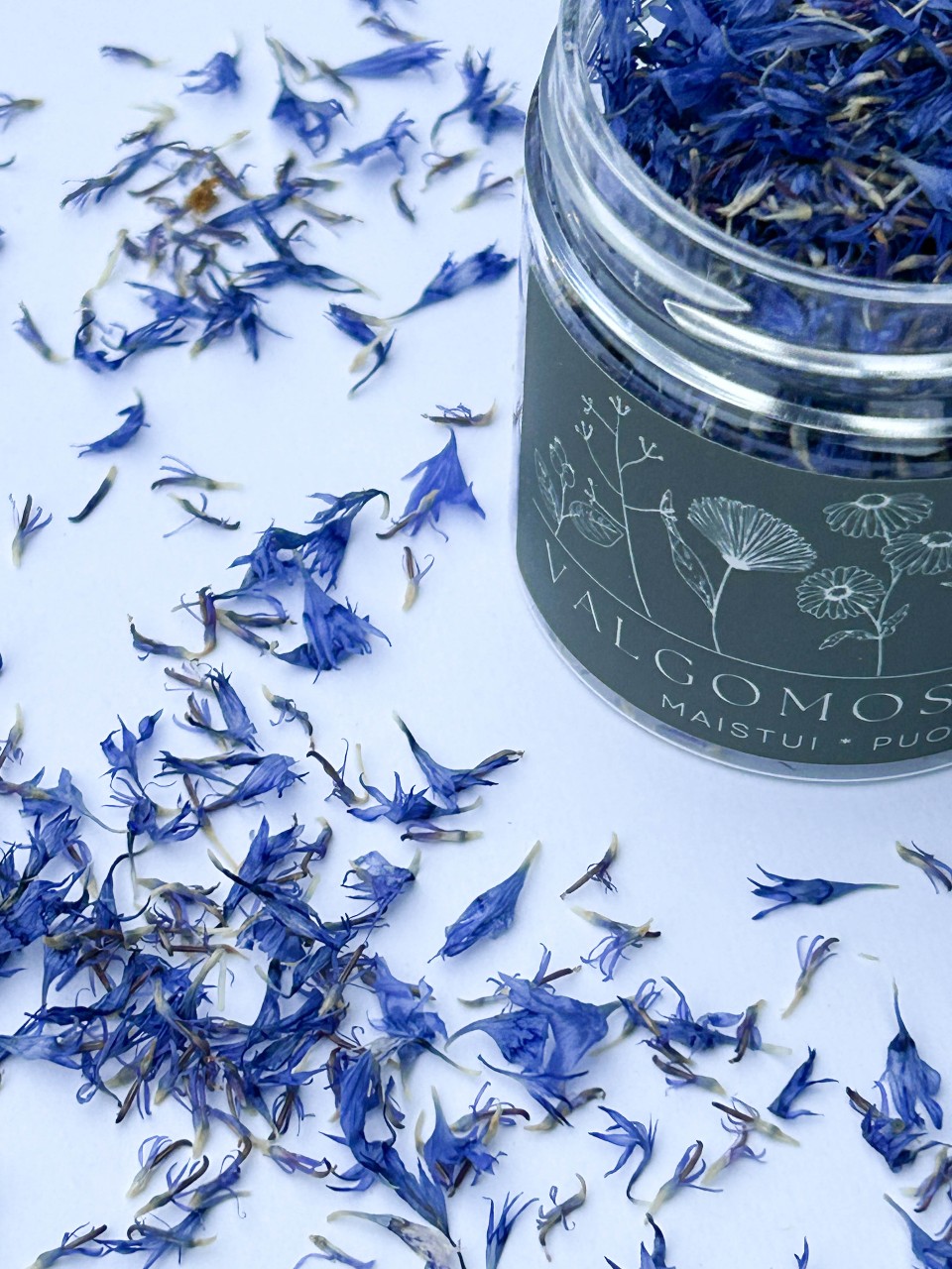 Džiovinti mėlynų rugiagėlių žiedlapiai