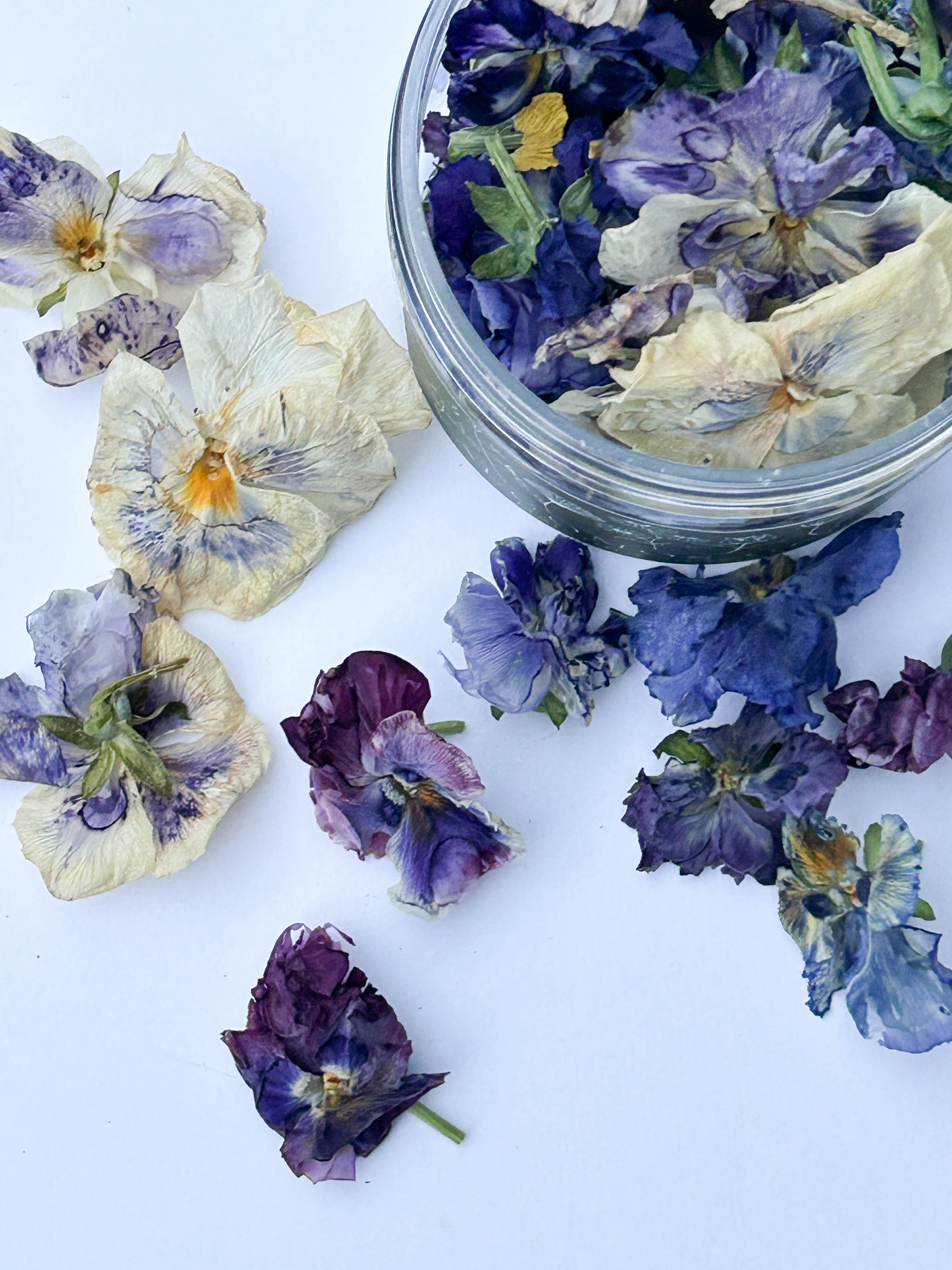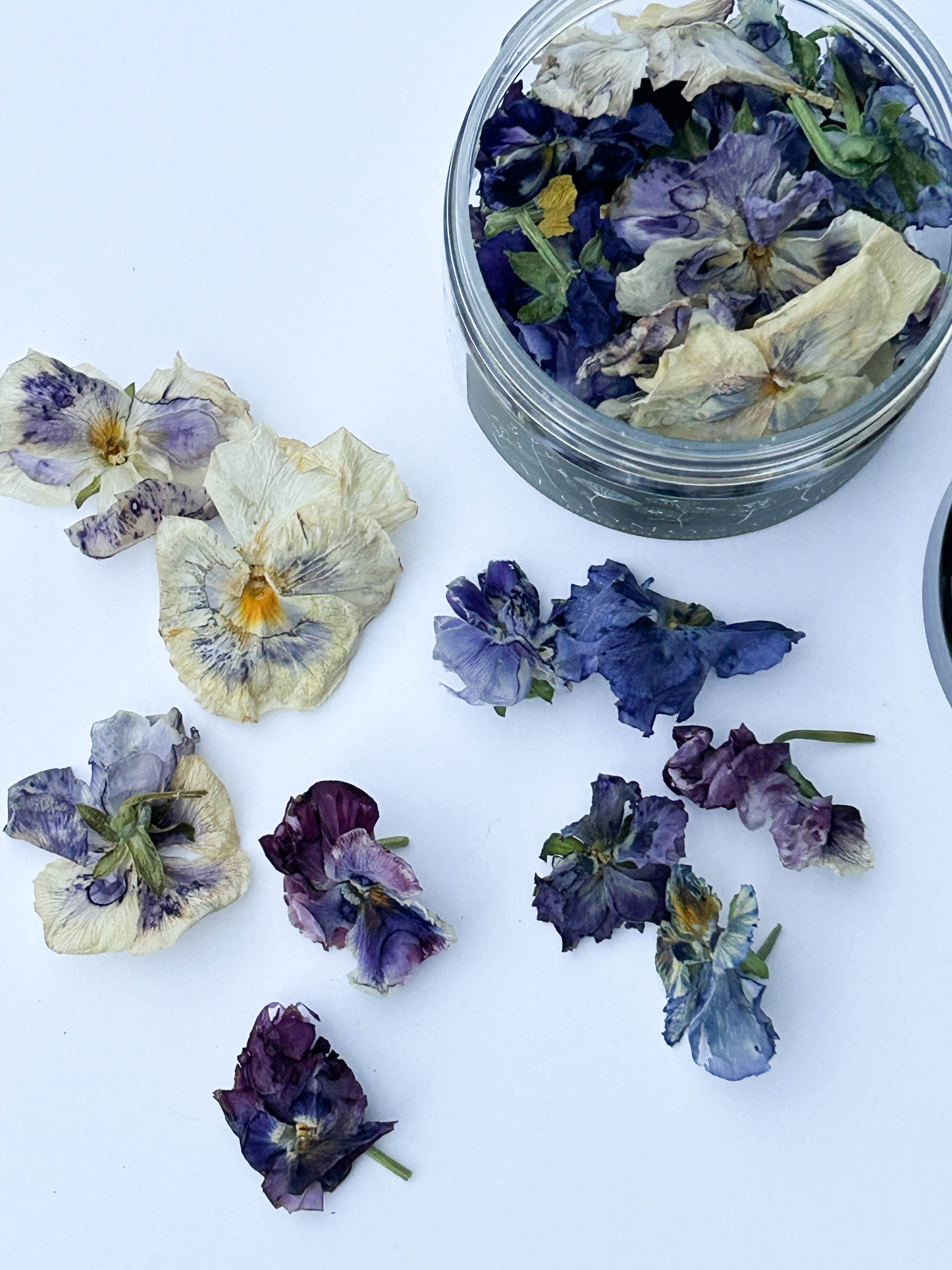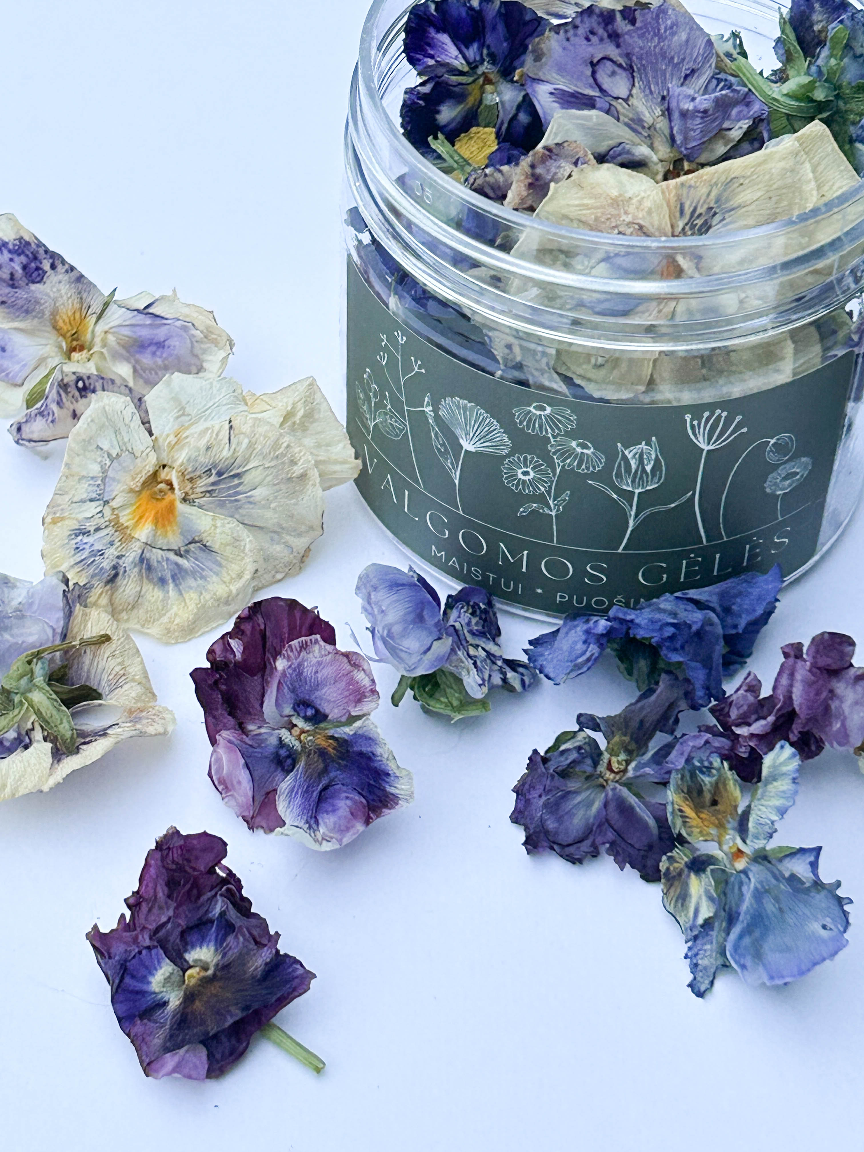 Liofilizuoti stambiažiedžių našlaičių žiedai