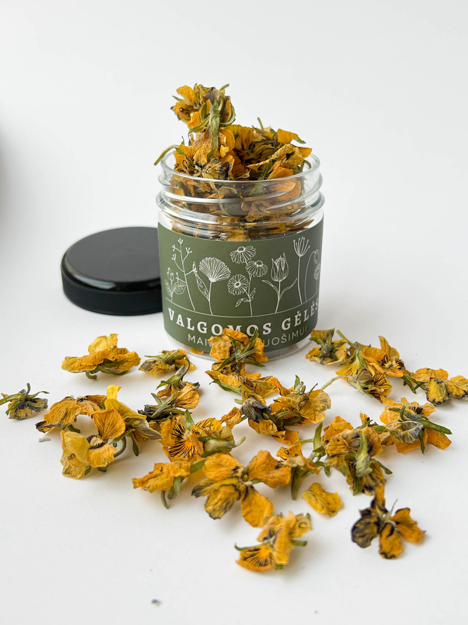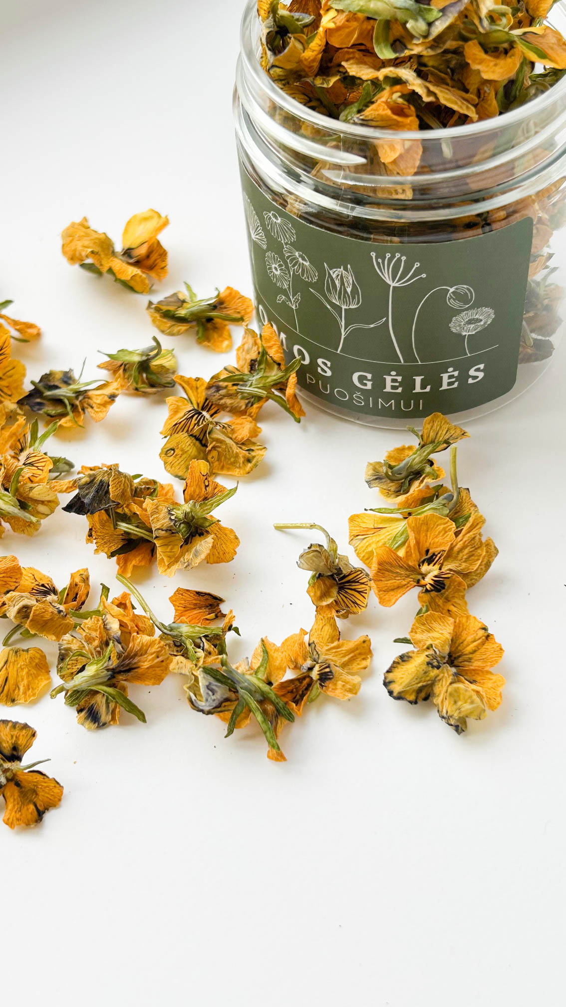 Liofilizuotus našlaičių žiedus galima naudoti visur: puošiant patiekalus, užkandžius, kepinius, desertus ar gėrimus.